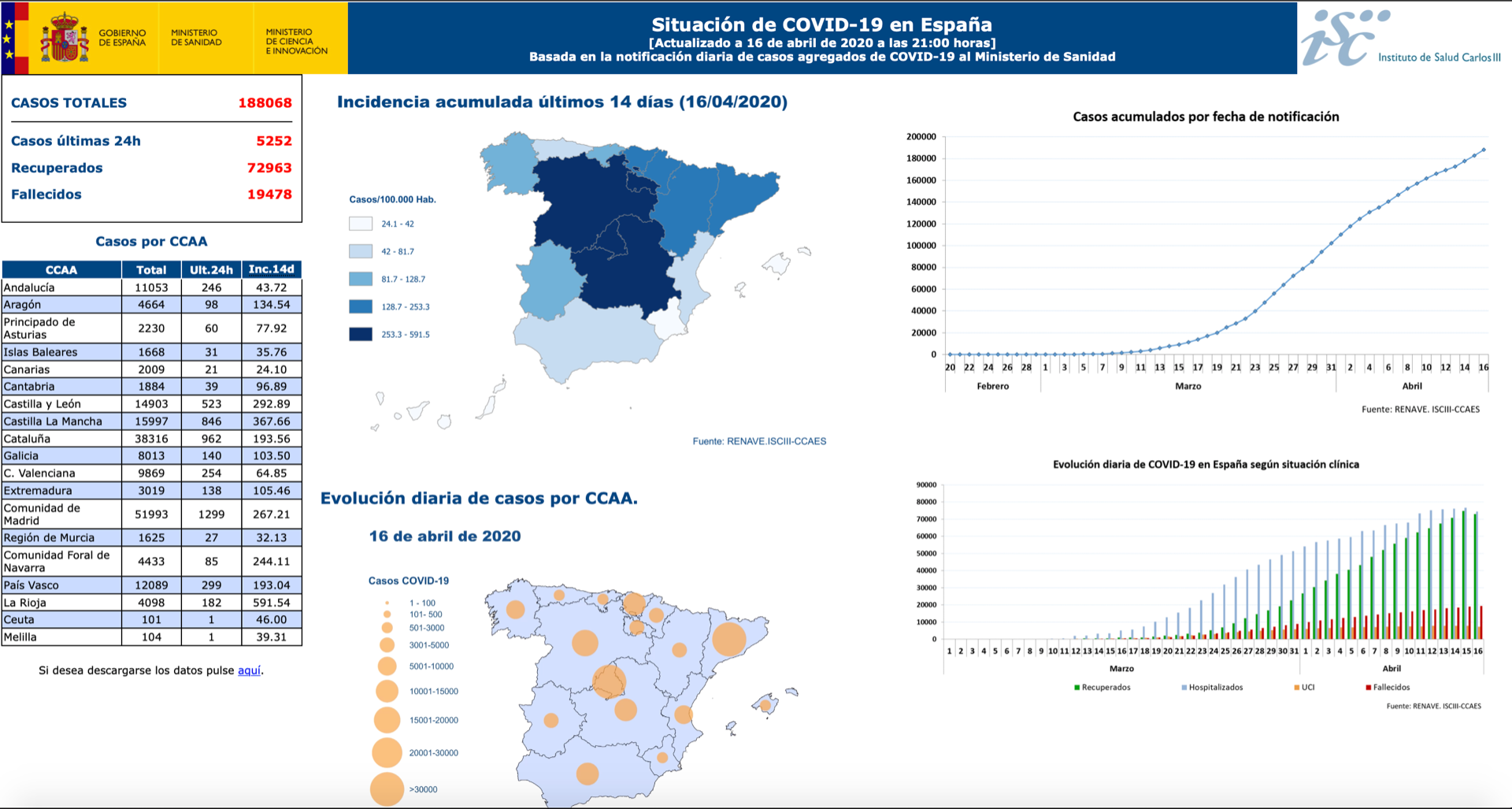 Las cifras a las 20:00 horas del día 16/04/2020 fueron las siguientes: